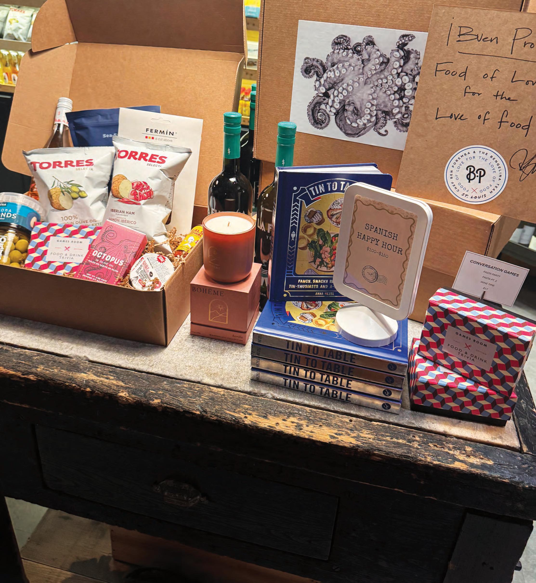 The warm and welcoming gathering place invites visitors to partake in thoughtfully prepared shareable plates, charcuterie boards, and housemade desserts alongside a curated, ever-evolving list of wine, beer, and spirits. “The goal is to always play off of what we already carry in the shop to showcase the products we have in a different light,” Parker says.