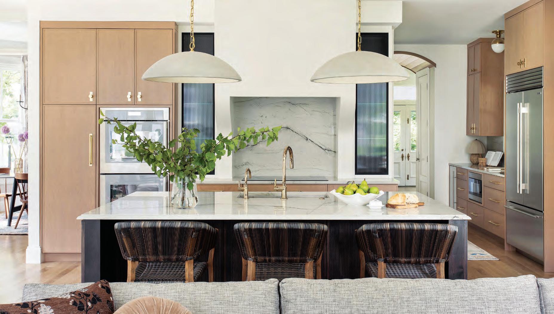Lead designer Amy McCoy describes the former room as featuring “distressed cabinetry, heavy finishes, and a peninsula with a built-in cooktop that visually and physically blocked the kitchen from the rest of the home.”