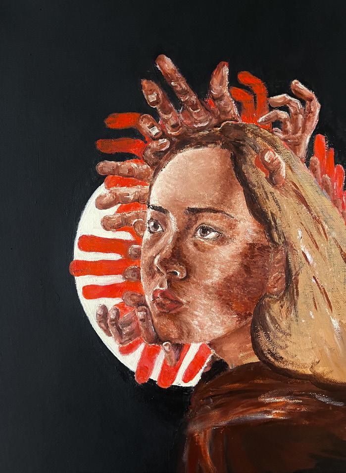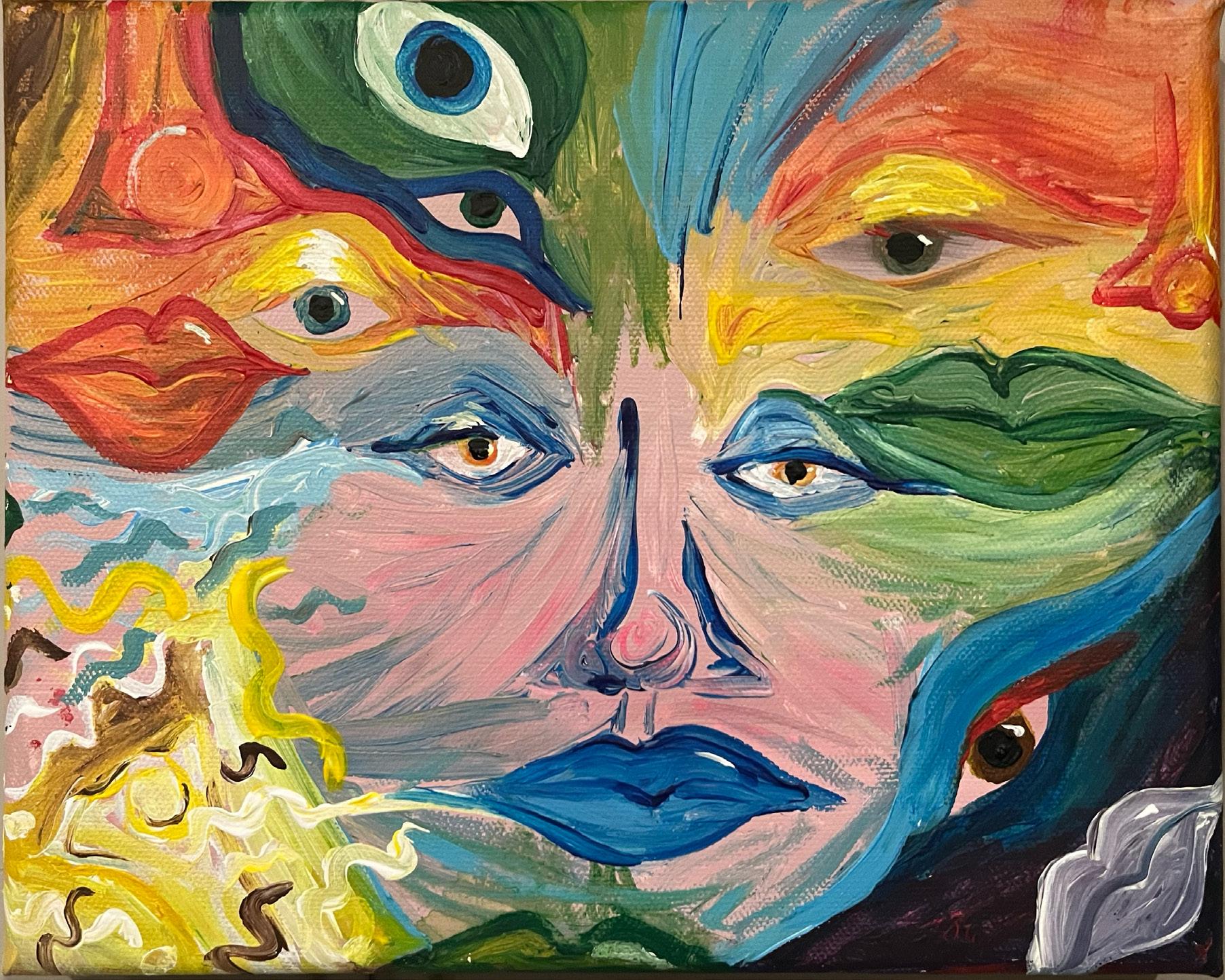 I made this piece to summarize my tumultuous feelings on gender and my experience with crossdressing, as well as the emotional strife I went through while questioning my own identity. I learned that it’s always good to try new things and expand upon yourself, but you should never feel pressured to do so.