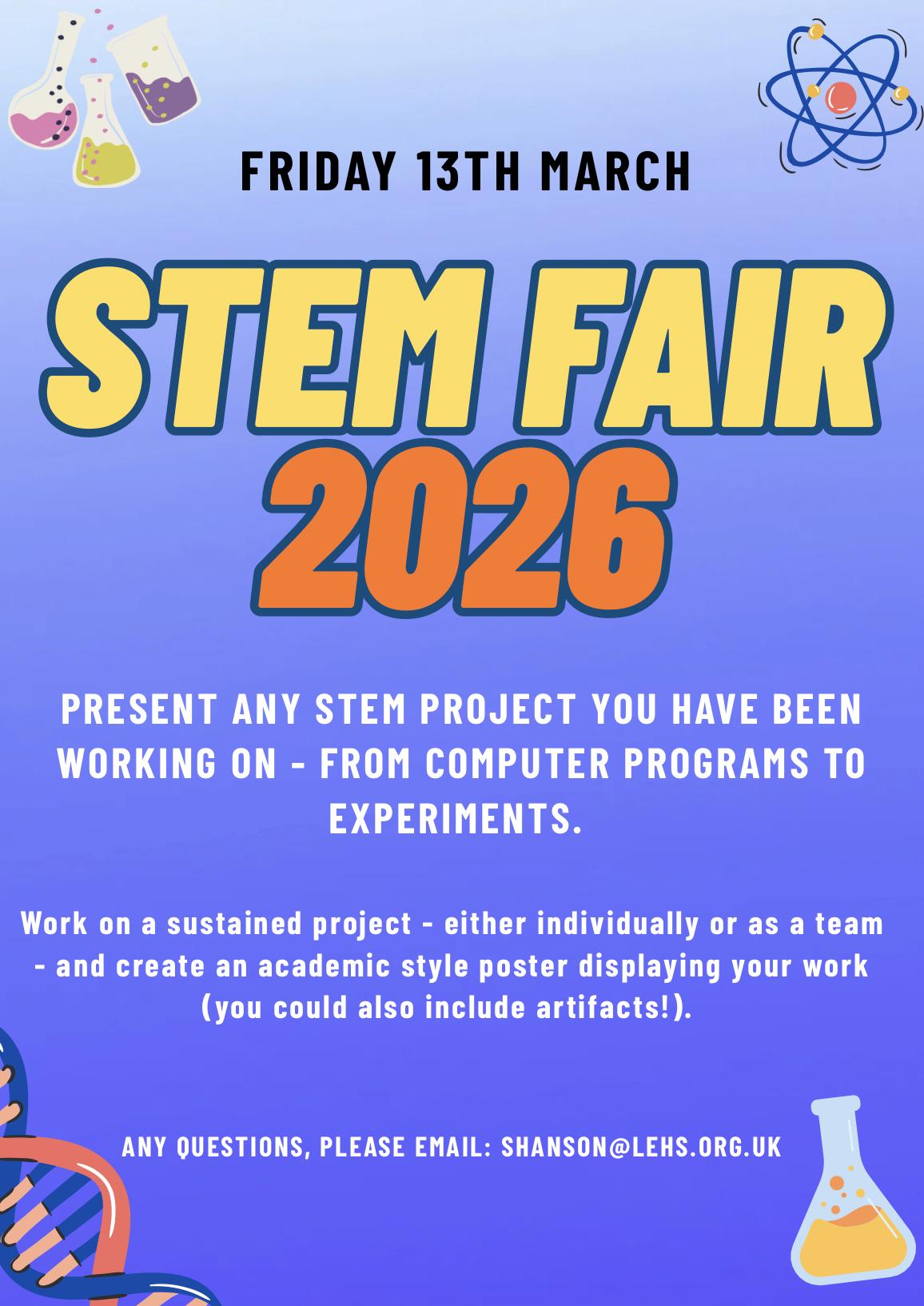 On Friday 13th March, the LEH STEM Fair 2026 will take place.