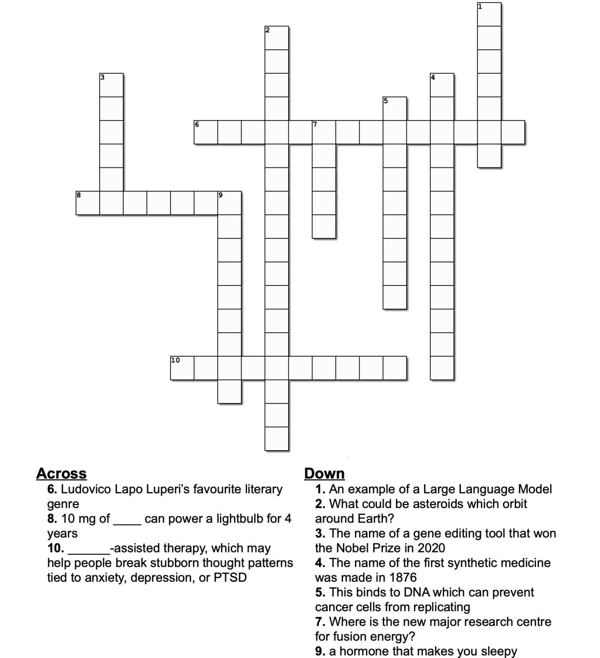 The crossword puzzle answers are related to the articles. If you think you have completed it, email your answers to shanson@lehs.org.uk