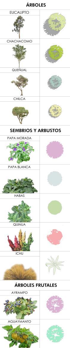Finalmente, en aulas, eje central y zonas comunes de residencia, se plantaron árboles medicinales y frutales como el ayrampo y aguaymanto, añadiendo valor funcional y estético