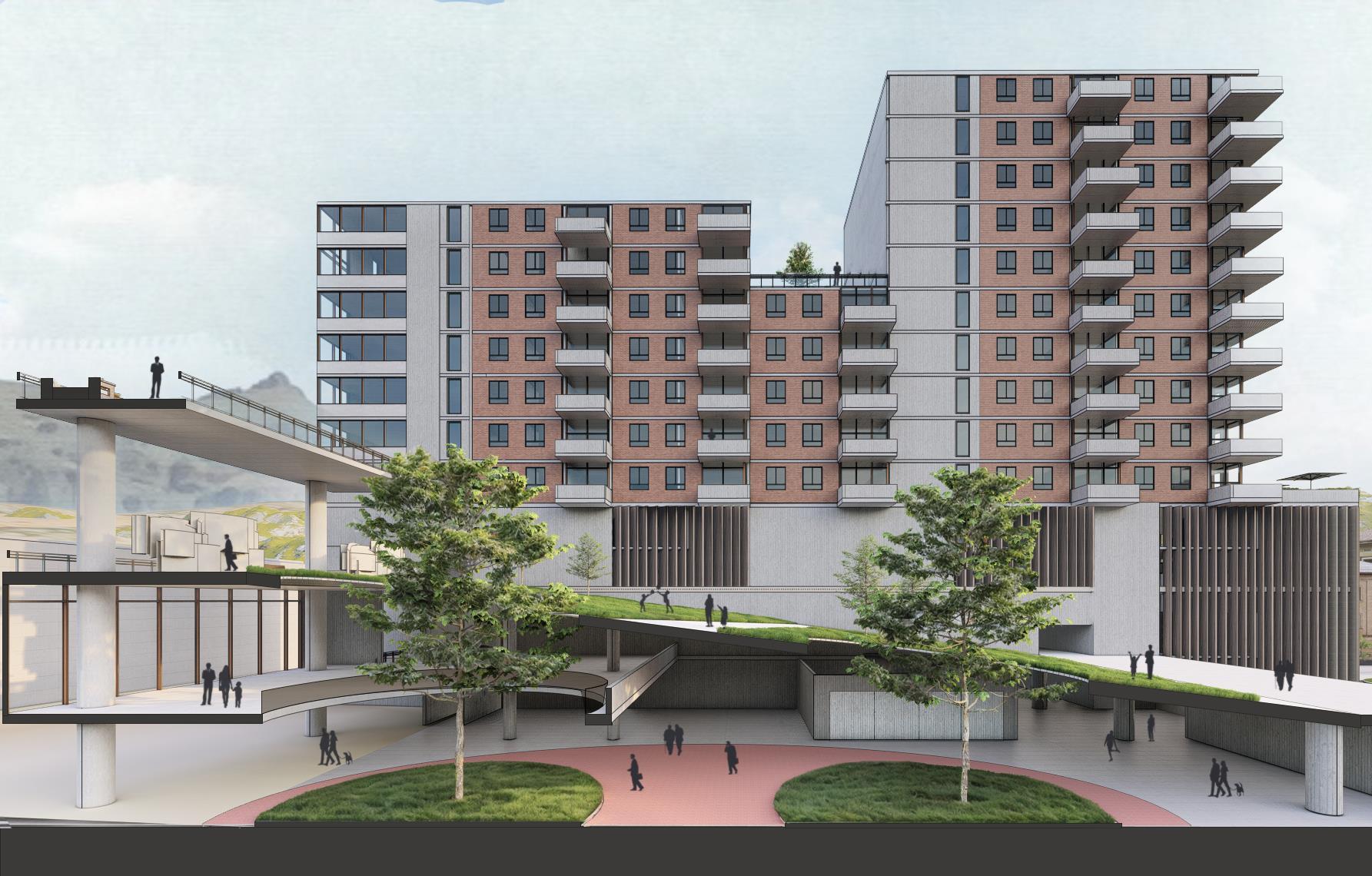 De esta manera, se propone un edificio híbrido central que incluye una zona comercial, cultural y residencial, promoviendo la interacción comunitaria y fortaleciendo la identidad local.