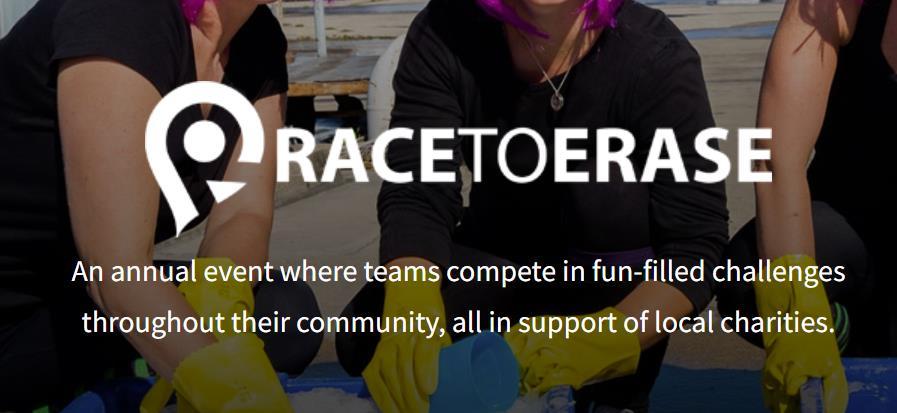 The Race to Erase is not a running race! The challenges are a combination of savvy and smarts – no goofy shorts required. On Race Day, teams compete to complete the challenges in the fastest time. Everyone gathers together at the start to register before heading out to different locations, and only after they have completed the first challenge, are they give the location of the next one. Watch the video below to learn more.