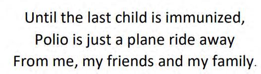 • Raise awareness in your community by planning events or projects that support the fight against polio.