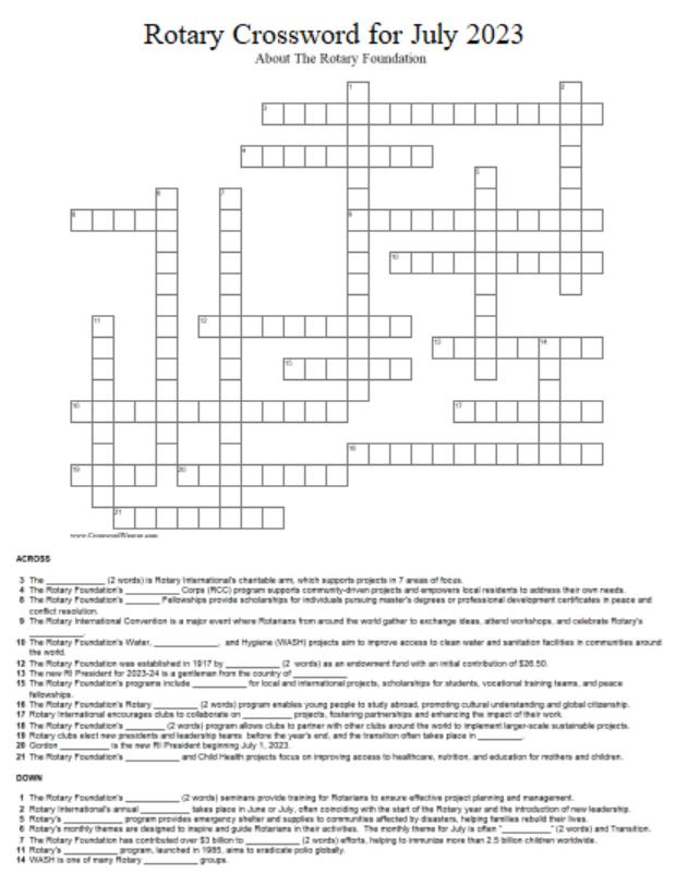 ROTARY FOUNDATION INTERACTIVE CROSSWORD 2023