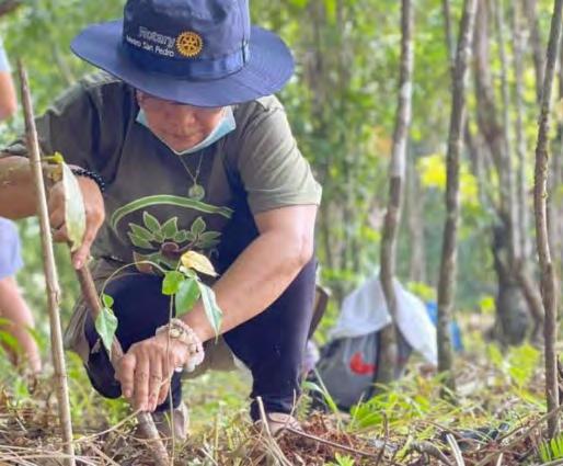 Delia B. Rodelas, past president of the Rotary Club of Metro San Pedro, plants a tree during the kick-off of the Rise Up for Sierra Madre project, which aims to reforest 20 hectares of the Sierra Madre mountains in Laguna, Philippines.
