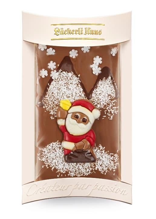 Le chocolat au lait suisse est décoré avec amour et à la main d'un Père Noël en massepain (façonné à la main). Les flocons de neige (flocons de coco blancs) confèrent à ce produit une ambiance hivernale incomparable.