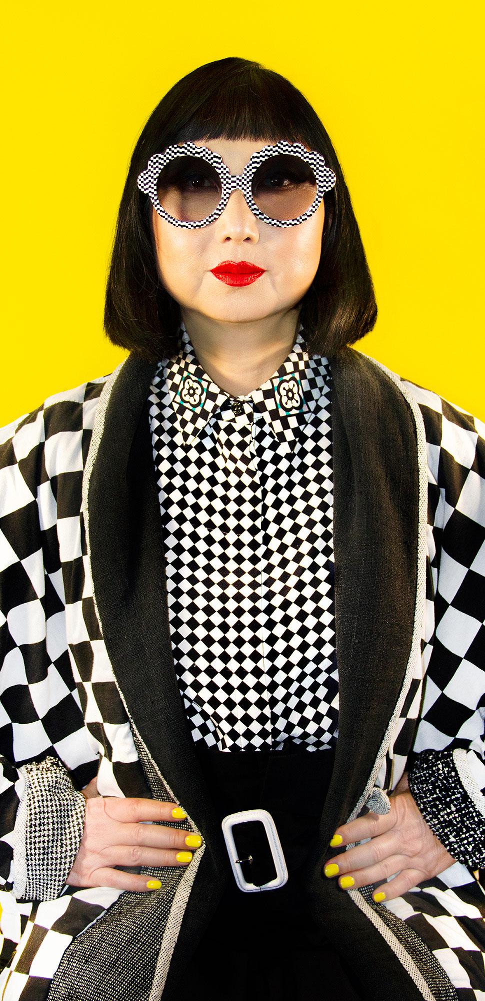 The stylish optical pioneer has tapped Los Angeles stylist Shirley Kurata to model its first sunglasses collection in a decade, including a pair of striking oversize round black-and-white checkerboard “Biba” frames.