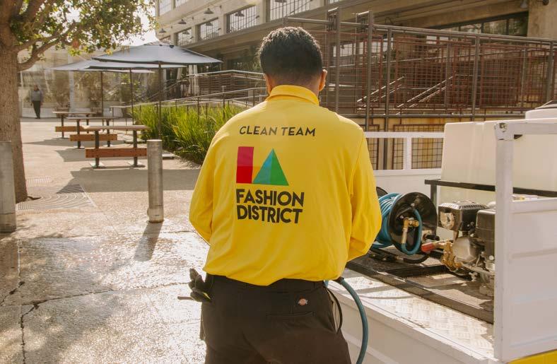 CLEAN & SAFE -- The LA Fashion District’s sidewalks and public right-ofway are maintained and patrolled by our Clean and Safe Teams. Clad in the LA Fashion District’s historic signature yellow, these teams are on patrol 24 hours a day, 7 days a week.
