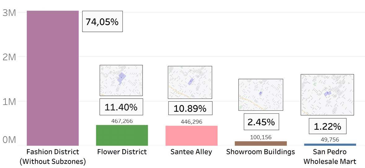 From this we can conclude that Downtown is very vulnerable to any political changes. Protests and federal activity have caused serious damage to visitation and the Fashion District’s economy overall. Visitation can drop suddenly, while recovery will be slow.