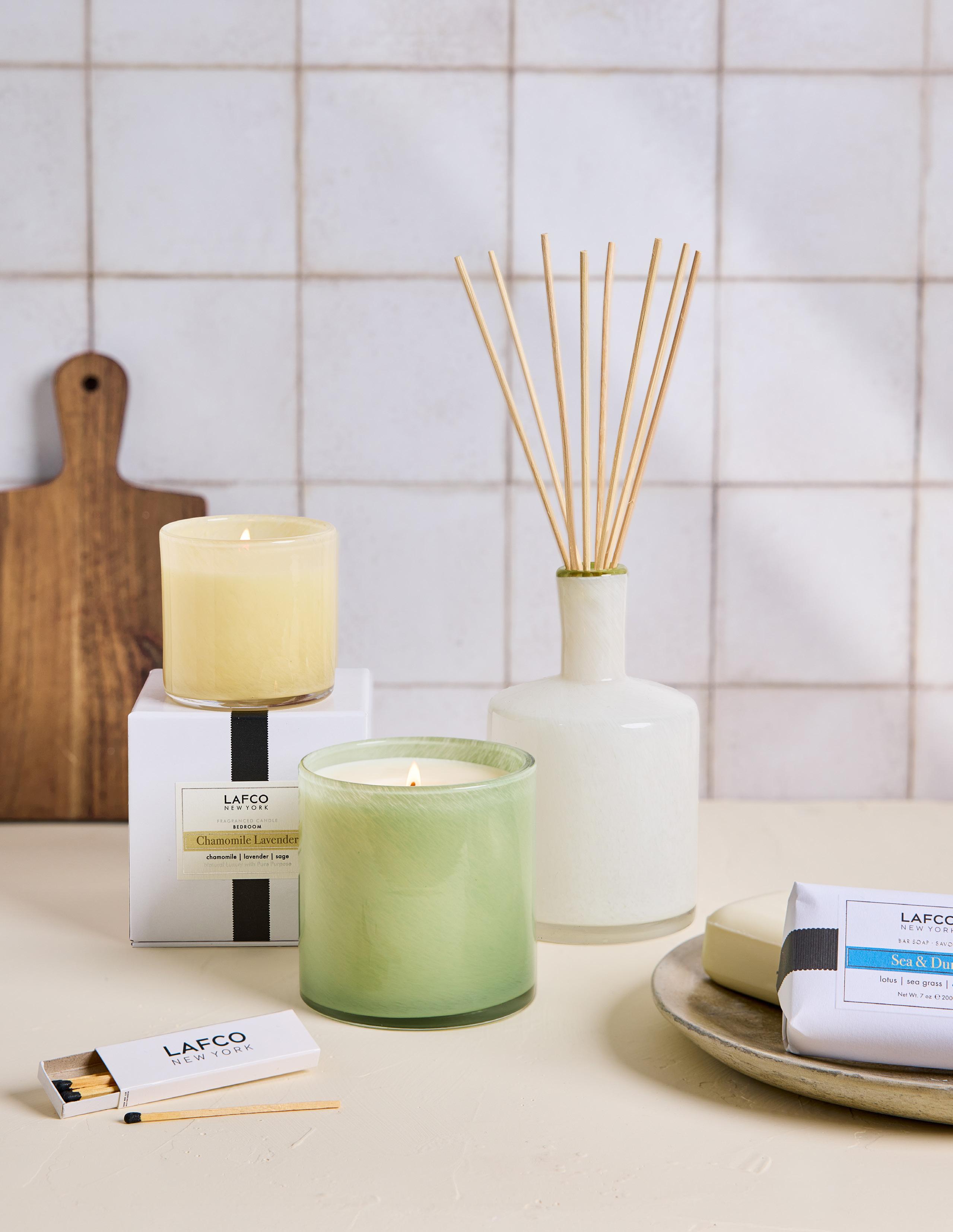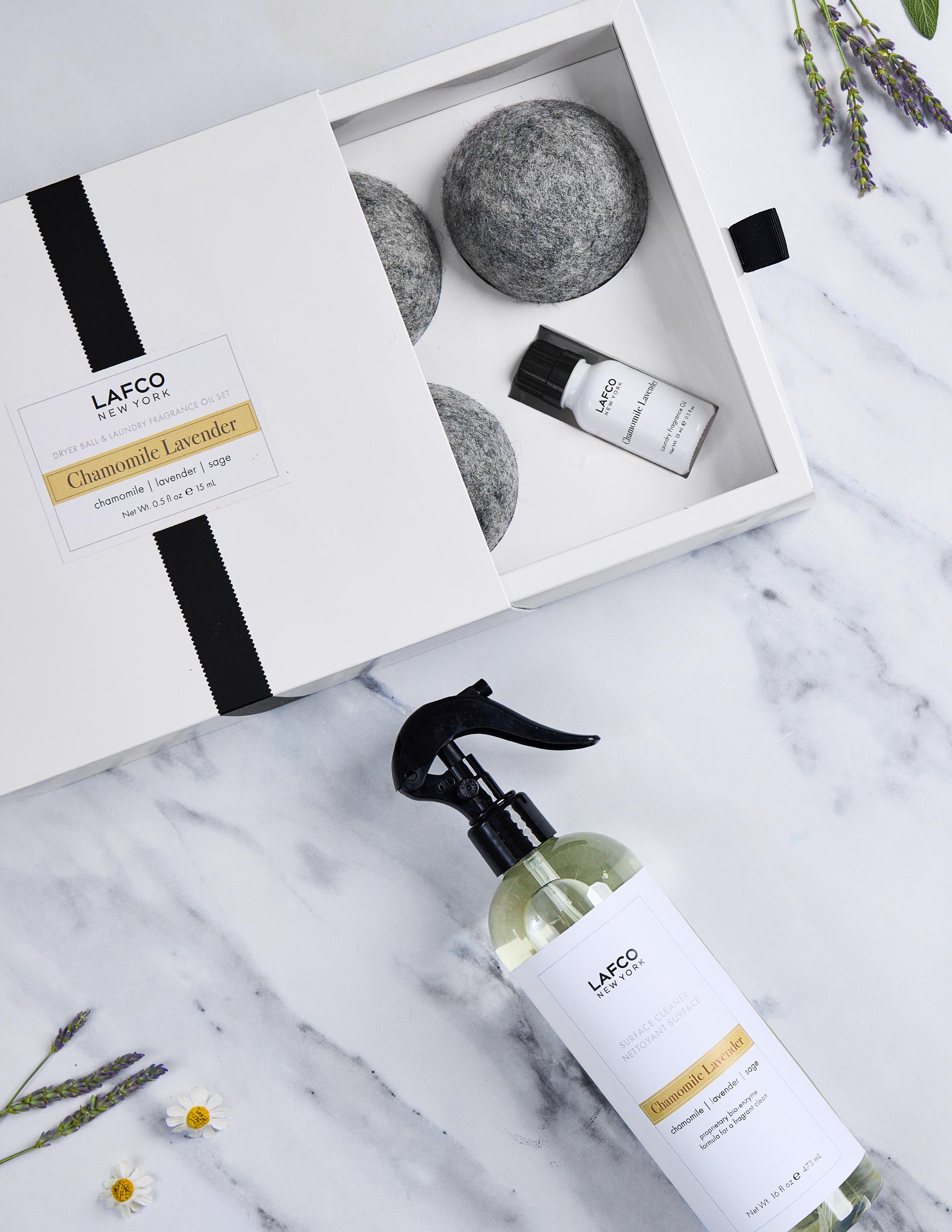 Discover a new line of laundry detergent, laundry fragrance oil, dryer balls, and surface cleaner—crafted with LAFCO’s unyielding commitment to artistry and natural perfumery. Available in our calming Chamomile Lavender fragrance with notes of smoky patchouli, sage, and rosemary.