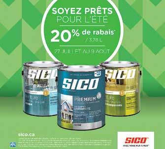 JEUDI 27 JUILLET AU MERCREDI 2 AOÛT 2023 LAFERTE.COM 30$ Coffre à tiroirs « Tough System 2.0 » #DWST08320 13995 Prix courant 16999 15$ Clenche de porte « Amador » Nickel satiné ou Noir mat #429404/412420 8495 Prix courant 9999 #PLFC12STRA 40% #L3513 645 Prix courant 1089 Cadrage carré 25% Flottant « Opera » AC4 • 12mm • 13,47 pi²/boîte Prix courant 209 155 80$ Tondeuse 289 Prix courant 369 sur les GAZEBOS EN INVENTAIRE 25% pi2 pi2 Strauss sur les PEINTURES D’INTÉRIEUR « PRESTIGE » 3,78 L 20% 5119 À PARTIR DE sur les REVÊTEMENTS D’ACIER « BELLARA » EN INVENTAIRE 10%