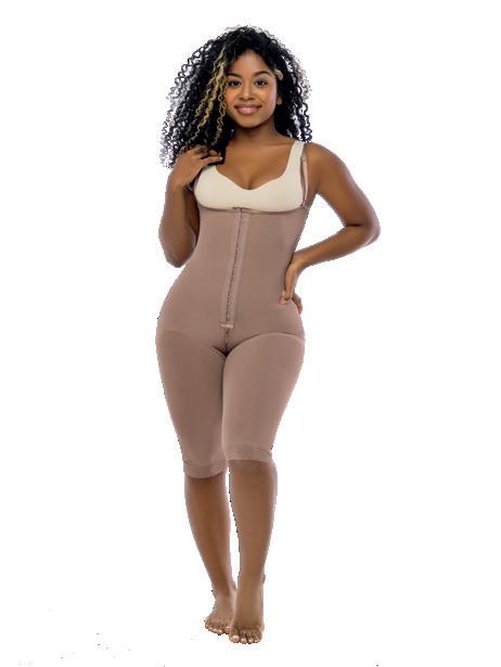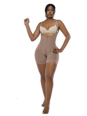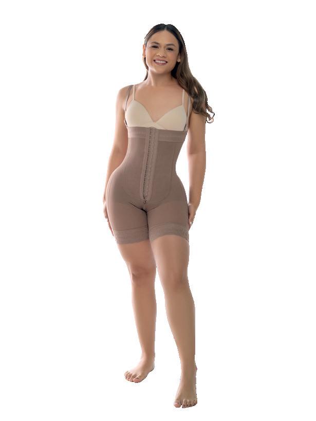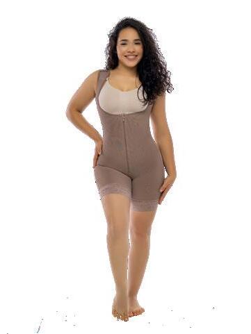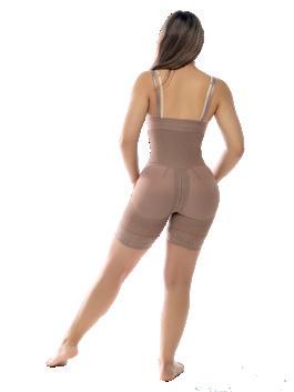 Cómodo diseño en tiras de brasier que puedes usarla con cualquier prenda. compresión en abdomen, cierre centro y media pierna con encaje siliconado.