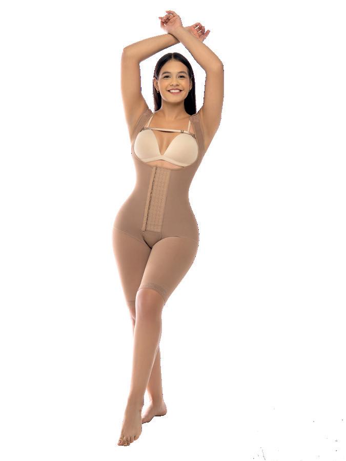 Alta compresión en cintura y abdomen que permite usar escotes y vestidos con más confianza, levanta y define tus glúteos.