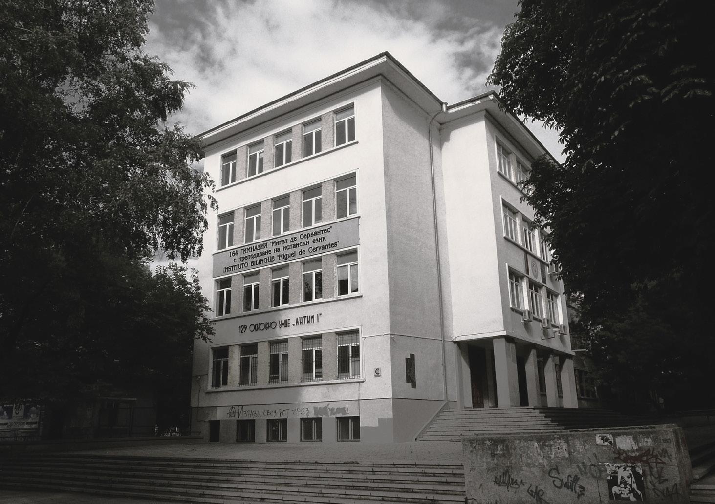 ще преди повече от 120 години на тази софийска улица се е намирало училище – девическото „ Антим Първи“ с открит плувен басейн вместо двор – помещаващо се в сградата, ко то предстои да стане нови т дом на Испанската Бомбардировките над Софи през Втората световна война обаче пораз ват район „Оборище“ и училището е разрушено. Построена е новата сграда, където в началото на учебната 1990 – 1991 г. се преместват четири подготвителни паралелки с изучаване на испански език от 9. ФЕГ. През следващата съдбовна 1991 – 1992 учебна година се създава 164. ГПИЕ „Мигел де Сервантес“ и животът на улица „Султан тепе“ № 1 се промен коренно