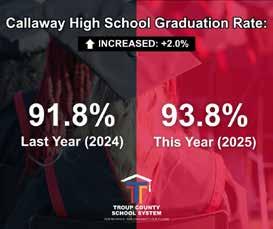 A few years ago, school leaders decided to aim high. Jason Graham, principal at Callaway High School, recalls setting a clear and ambitious goal: get the graduation rate into the 90s. It was a challenge, but they mapped out a fouryear plan, believing that incremental progress would lead to a huge payoff. That belief was put into action across the county. At LaGrange High School, principal Jamie Bozeman saw the need for a new approach. After a slight dip in their numbers, they shifted from having individuals track students to creating a powerful team effort. This spirit of teamwork became the foundation for success.