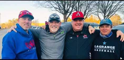 Tim Smith ’93, Dan Waller ’92, Keith Hansen ’92 and Matt Alford ’94 recently met up at a LaGrange High School baseball game. Coach Keith Hansen brought his Altoona High baseball team to town for a local tournament.