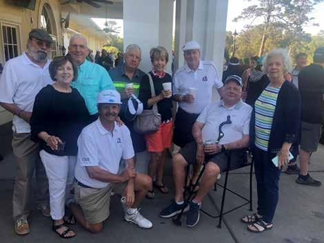 The Bubba Hill Memorial Golf Scramble at Highland Country Club benefited the Alzheimer’s Association in memory of Luke Robinson Hill Jr. ’74. Pictured left to right are, back row, Walter Davis ’74, Norman Wynne Sr. ’75, Johnny and Nancy NeSmith Williamson ’71, Wiley Bryant ’72, Tom ’69, and Mary Wells Conway ’72; front row, Patsy Burdette Wynne ’74, M’10 and Ralph Sims ’71.