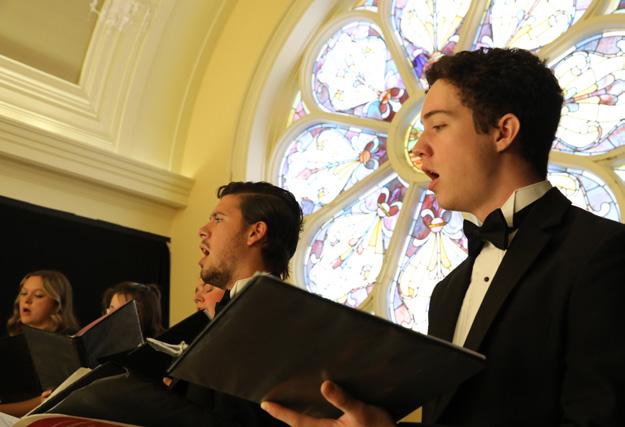 Composition & Music Technologies and Theatre Arts students also served as interns on the shoot, according to Assistant Professor of Film & Media Arts Yson DeBlois. In addition, several other students and faculty were able to be background talent on camera.