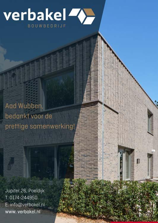 visering. En misschien komt er wel meer tijd voor hun gezamenlijke hobby: reizen. In hun KOW-tijd hebben de twee volop genoten van architectuurtrips naar landen als Dubai, Jordanië, Syrië, Jemen en Zuid-Afrika. Sindsdien hebben ze de smaak te pakken. Terugkijkend heeft het leven hun veel geschonken. Niet alleen het prachtige architectenbureau maar op de eerste plaats natuurlijk vier prachtige zoons. Mike, komt nog uitgebreid aan bod in dit blad. Maar ook de andere drie jongens hebben het goed gedaan met carrières in de bouw, tuinbouw en de kwekerijwereld. En het bureau heeft Hilda en Aad ook nader tot elkaar gebracht. Waar Hilda opgroeide in relatieve weelde, ‘wij hadden een vrijstaande woning met douche en televisie’, was Aad altijd gewend om met weinig rond te komen. Inmiddels gaan ze samen op en denken hetzelfde over materiele zaken, normen en waarden. Zelfs esthetisch groeiden ze naar elkaar toe. “Wij komen uit de periode van de zware eikenhouten meubels, maar dat ligt ver achter ons”. Inderdaad waar je in hun woning ook om je heen kijkt, alles is strak en modern. De technische man Aad Wubben ontwikkelde zich ook als vormgever. Het L’Agora in Valencia is zijn droomgebouw. Tijdens hun buitenlandse reizen leerden ze genieten van uitbundig kleurgebruik en weelderige vormen, eigenlijk in tegenstelling tot hun Mondriaan fascinatie waarvan de dikke boeken in Aad zijn boekenkast de stille getuigen vormen. Veel moderne hoogbouw ontwikkelde hij met het bureau maar meest opvallend was in 2001, met KOW, toch wel het hoofdkantoor van Mammoet (Frans van Seumeren) dat nu net naast Benelux-tunnel staat. “Dit kantoorgebouw werd in een scheepsloods gebouwd en plug