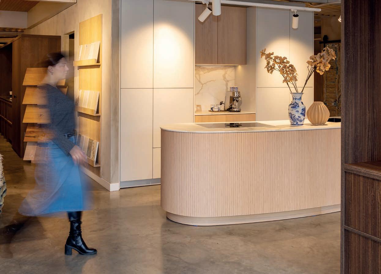 Het enthousiasme spat ervan af als je met Evelien praat over haar vak. Mooie keukens voor mooie mensen — daar gaat het haar om. Want uiteindelijk draait het om mensen, zo legt ze uit. “Je wilt in het hart van je klant kijken. Wat is hun stijl, hoe is de woning ingericht? Wat is de gezinssamenstelling? Wat zijn de looplijnen in de keuken, hoe ligt de keuken ten opzichte van de tuin, heb je vrij zicht naar buiten? Maar ook heel praktisch: welke onderdelen van je huidige keuken wil je per se niet terug laten komen of juist heel graag behouden?”