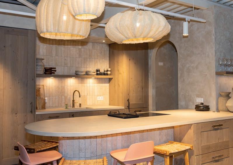 Het bijzondere van Puur Keukens zit ’m volgens haar in twee woorden: eigen stijl en maatwerk. “Als je bij ons door de showroom loopt, zie je vanzelf het verschil met de woonboulevard. Warme keukens in Ibiza-setting met veel gebruik van natuurlijke materialen. Mediterraan. Geen strakke hoogglans maar een combinatie van hout, steen en stijl. Wij gaan qua maatwerk een paar stappen verder dan de gemiddelde keukenaanbieder: dikke stollen, ronde (!) keukens. Pas heb ik nog een keuken getekend en verkocht — joh, zó mooi. Wow, met walnoothout, een groot betonnen blad en bronzen fronten. Dat waren ook zulke leuke mensen.”