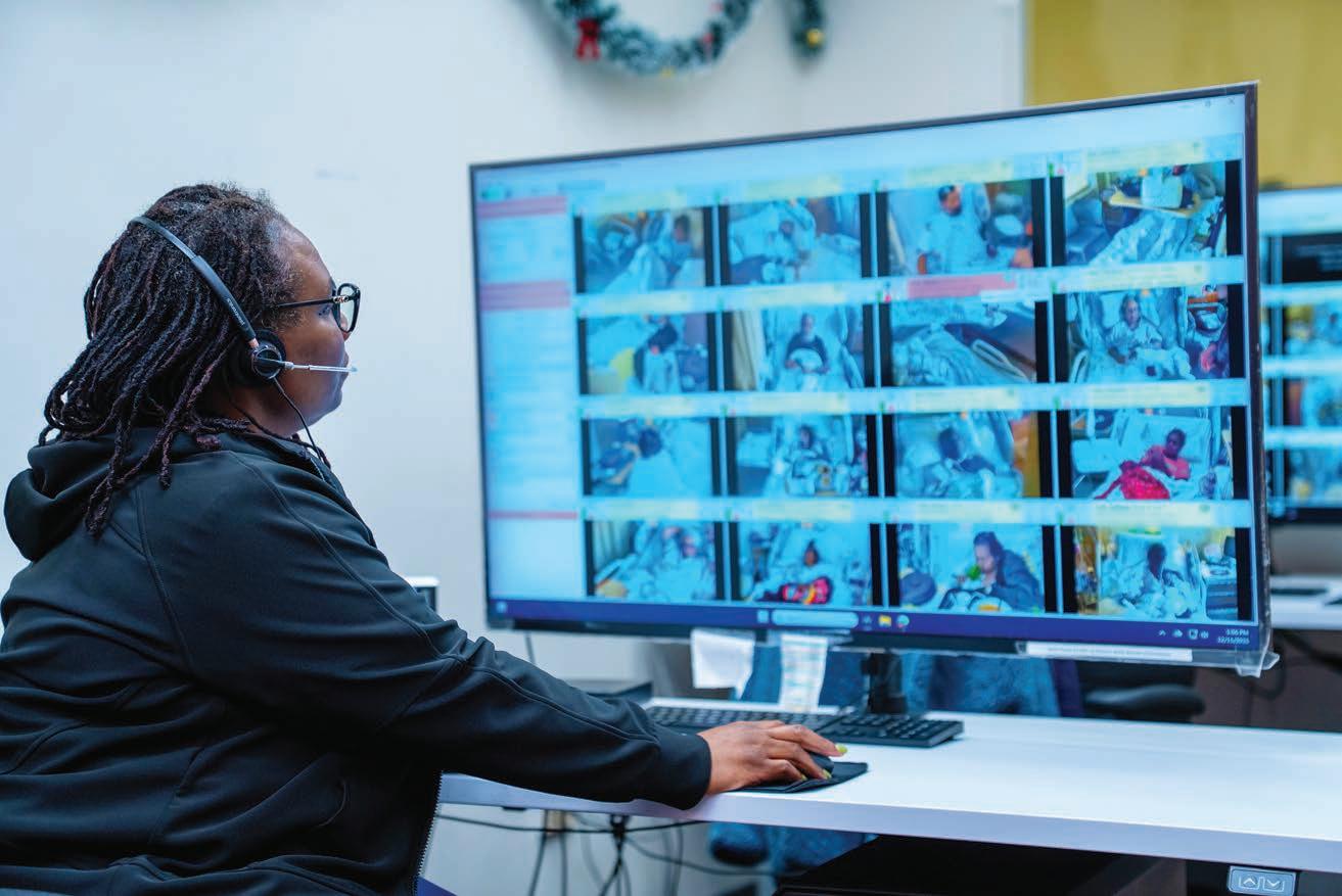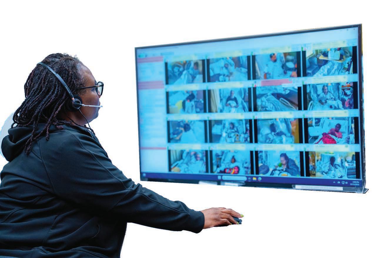 The TeleSitter Program is transforming patient safety. Using real-time video monitoring, sta� can intervene instantly when a patient is at risk, preventing falls, protecting lines and tubes, and supporting calmer recoveries.