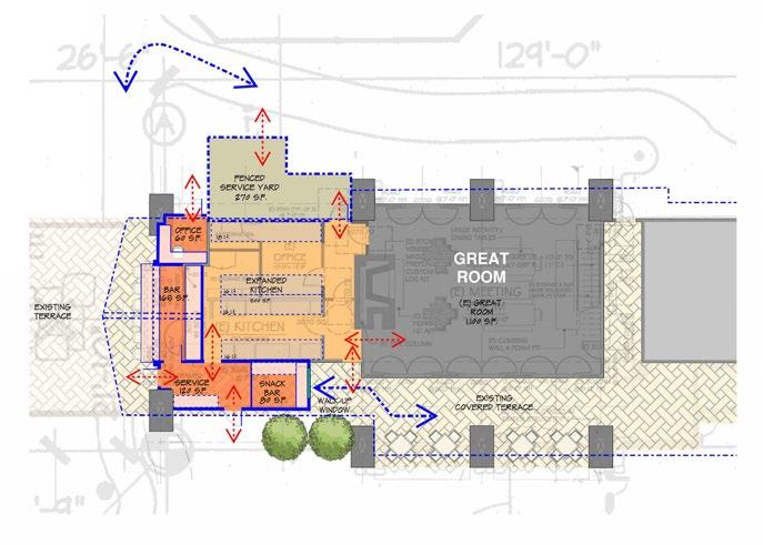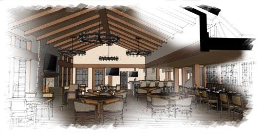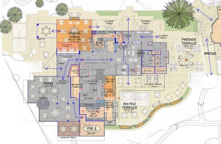 The core Lodge Main Level plan, with 1,160 s.f. of new construction, is designed to address Member requests for multi-generational casual dining areas and to refresh the interiors.