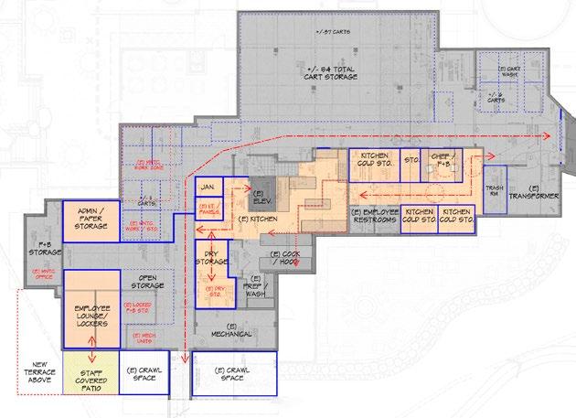 Extensive renovations to the Lodge and Camp kitchens. The main and lower levels of the Lodge kitchen plan includes significant upgrades that will improve efficiency, attract and retain top culinary talent, and add capacity. The Camp kitchen infrastructure improvements will reconfigure and enlarge the working space and provide the equipment needed to service Member dining needs.