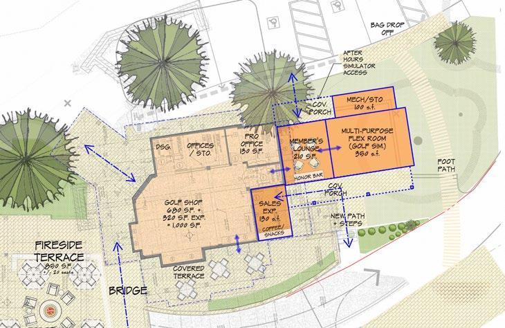 The proposed Golf Shop Expansion will provide 800 s.f of new space to locate new Member amenities, including:
