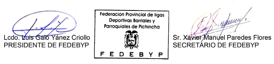 Lcdo. Luis Galo Yánez Criollo Sr. Xavier Manuel Paredes Flores PRESIDENTE DE FEDEBYP SECRETARIO DE FEDEBYP