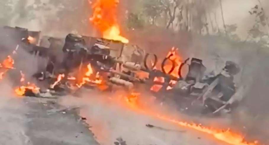 ham Calazacón, cerca al ingreso a la cooperativa 16 de Marzo. Las causas del accidente aún son investigadas por los peritos. Se presume que un neumático se reventó y ocasionó la pérdida de pista, lo que habría provocado que se incendiara el combustible que transportaba. (JD)