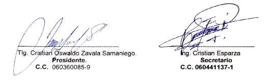 Jaime Eduardo Salazar Bravo Ruth Alexandra Diaz Yanez Presidente Secretaria