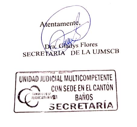 UNIDAD JUDICIAL MULTICOMPETENTE CON SEDE EN EL CANTÓN BAÑOS, PROVINCIA DE TUNGURAHUA. Baños de agua santa, miércoles 11 de octubre del 2023, a las 16h30. VISTOS: Avoco conocimiento de la presente causa en legal y debida forma. El escrito, la demanda y anexos que anteceden agréguense al expediente. En atención a su solicitud se provee de la siguiente manera: 1).- Calificación: La demanda planteada por la ABG. JIMENEZ ESPIN MARIA VERONICA, en calidad de Procuradora Judicial del Doctor Klever Rolando Ortiz Ortiz, Gerente de la Cooperativa de Ahorro y Crédito Oscus Ltda., por ser clara, precisa y cumple los requisitos legales previstos en el artículo 142 y 143 del Código Orgánico General de Procesos (COGEP) y se fundamenta en pagare adjunto, documento que constituye título ejecutivo, al tenor de lo previsto en los artículos 347 y 348 del mismo código, ya que contienemuna obligación clara, pura, determinada y actualmente exigible; por lo que se califica y admite a trámite mediante PROCEDIMIENTO EJECUTIVO. 2).- Citación: a).- Se ordena la citación del demandado señor: BARRERA OJEDA JUAN CARLOS, en calidad de Deudor Principal, en su domicilio señalado, mediante el encargado de citaciones de esta Unidad Judicial del cantón Baños de Agua Santa, provincia de Tungurahua, conforme lo requerido por la actora. Para la citación se adjuntará la demanda, copia certificada de los documentos adjuntos y este auto inicial. 3).- CONTESTACIÓN A LA DEMANDA: A fin de que la parte accionada ejerza su legítimo derecho a la defensa establecido en el Art. 76 numeral 7 de la Constitución de la República del Ecuador, en aplicación de los artículos 355 y 333 numeral 3 del COGEP, enatención al art. 55 de la Ley Orgánica reformatoria del CODIGO ORGANICO GENERAL DE PROCESOS, publicado en el ROS. No. 517 de fecha miércoles 26 de junio del 2019, se concede el TÉRMINO DE QUINCE (15) días para que el demandado señor: BARRERA OJEDA JUAN CARLOS, en calidad de Deudor Principal; a fin de que CONTESTE la demanda en la cual podrá: 1. Pagar o cumplir con la obligación; 2. Formular Oposición acompañando la prueba conforme con lo previsto en este código; 3. Rendir caución con el objeto de suspender la providencia preventiva dictada, lo cual podrá hacer en cualquier momento del proceso, hasta antes de la sentencia y de ser el caso; 4. Reconvenir al actor con otro título ejecutivo.- Dentro de la oposición podrá proponer las excepciones previas y taxativas enunciadas en los artículos 353 y 153 ibídem. Además, deberá anunciar todos los medios probatorios destinados a sustentar su contradicción, los mismos que deberán ser pertinentes, útiles y conducentes, para su defensa en virtud de lo previsto en el artículo 151 y 152 del mismo cuerpo de Ley. Bajo prevención que si la parte demandada dentro del respectivo término (15 días término luego de haber sido citados) no cumple con la obligación, ni propone excepciones o si las excepciones propuestas son distintas a las permitidas en el Código Orgánico de General del Procesos COGEP, para este tipo de procesos, se pronunciará inmediatamente sentencia y esa resolución no será susceptible de recurso alguno, en cumplimiento al artículo 352 del COGEP. 4).- ANUNCIO DE PRUEBA: El anuncio de las pruebas planteadas por la parte accionante en el libelo de la demanda de ser pertinentes, útiles y conducentes, se las admitirá y de existir oposición debidamente fundamentada a la demanda, en aplicación del principio de contradicción se ordenará su práctica en la fase correspondiente de la audiencia única conforme lo previsto en el inciso segundo del artículo 354 del COGEP. 5).- Providencia Preventiva: En mérito de la documentación aparejada a su demanda, consistente en las fichas registrales N.- “6599; y, 9840” emitido por el señor Registrador Municipal del cantón Baños, provincia de Tungurahua, se dispone como providencia preventiva lo siguiente: La PROHIBICIÓN DE ENAJENAR, de los lotes de terrenos de propiedad del demandado señor BARRERA OJEDA JUAN CARLOS, hasta por el monto de lo reclamado en la demanda, conforme lo establecido en el artículo 351 de la norma ibídem, para lo cual notifíquese para el efecto al señor Registrador Municipal de la Propiedad de este cantón Baños, mediante atento oficio con sus anexos, para lo cual la parte requirente preste las facilidades correspondientes, para su cumplimiento.- 6).- Notificaciones: Tómese en cuenta el correo electrónico señalado, para recibir sus notificaciones, así como la autorización que concede a su patrocinadora, para que ejerza en su defensa, a quien se le notificará en la casilla electrónica en caso de que la mantenga habilitada de conformidad con las disposiciones contenidas en la resolución 150-2017 emitida por el Pleno del Consejo de la Judicatura.- Actúe el Abg. Darwin Merino en calidad de secretario titular de esta Unidad. CÍTESE Y NOTIFÍQUESE.-UNIDAD JUDICIAL MULTICOMPETENTE CON SEDE EN EL CANTÓN BAÑOS, PROVINCIA DE TUNGURAHUA. Baños De Agua Santa, lunes 17 de marzo del 2025, a las 08h33. VISTOS: El escrito con anexos presentado por la parte actora en la calidad que comparece. Cumplido que ha sido la declaratoria bajo juramento de la imposibilidad de determinar la residencia o domicilio de los demandados, de conformidad a lo dispuesto en el Art. 56 numeral 1, del Código Orgánico General de Procesos, se dispone que se cite al demandado señor: BARRERA OJEDA JUAN CARLOS, con cédula de ciudadanía N.- 1803892445, con el auto de calificación y este auto, en uno de los diarios que se editan en la ciudad de Ambato, para lo cual por secretaría procédase a entregar el extracto correspondiente. NOTIFÍQUESE.-Lo que notifico a Ustedes, para su conocimiento y fines legales consiguientes, proviniendo de la obligación de fijar casillero judicial y/o correo electrónico en la causa referida, para sus posteriores notificaciones.- Baños 13 de Junio del 20