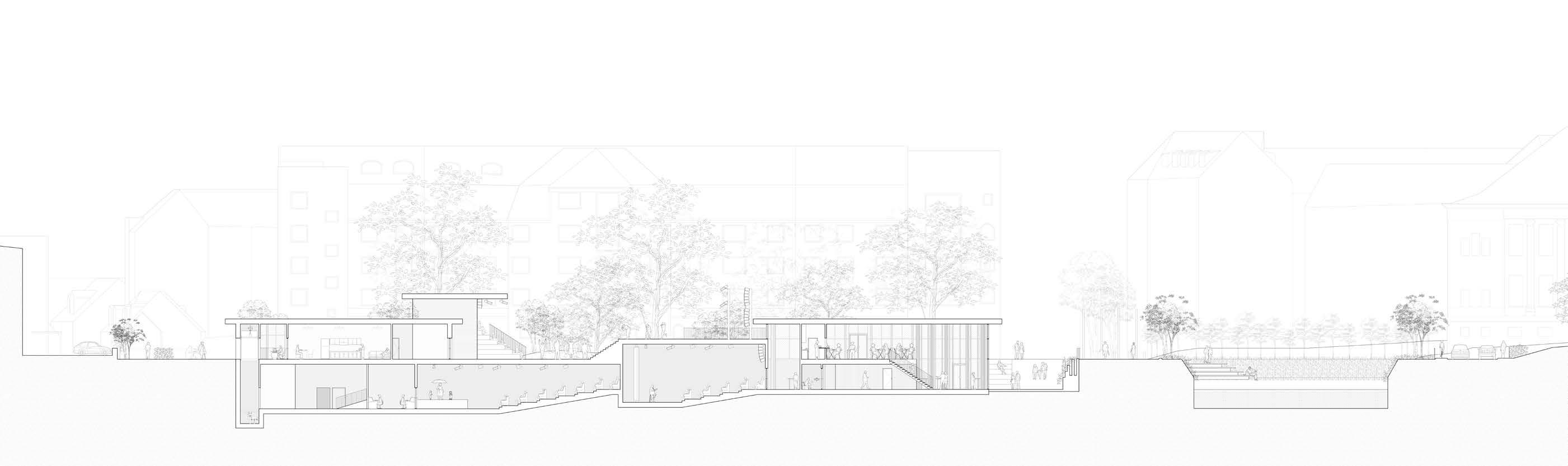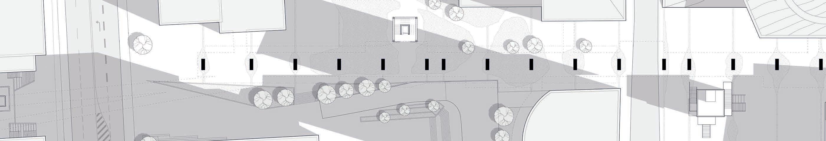 SHOWCASE A park that is clear, geometrically shaped. is often organized as a square in framework of surrounding buildings. The park is presenting certain important monuments, often an building that has historical and political value for the city. 1289, the king Denmark Valdemar Sejr initiated the construction of the first watermill in the town, by the Aarhus river. The area was expanded with several small mills and an open area around them was kept free until the 17th century, when was greatly expanded with garden. The mills were demolished in 1903. In 1926 the area became publicly owned and in 1930, in connection with the construction of the main library, the park was built. Ever since the park have been recreational area between the main library and Vester Allé. connection with an expansion of the library 19641967, number of the old trees and hedges were felled in favor of the construction of new diagonal roads. Another reorganization took place 1986-1987, where beds along the walkways were established. In 2006, new development plan for Mølleparken was presented in close connection with the extensive reopening of the river. The park was last renovated in 2014 and 2015 the library were moved to the harbour and the old building transformed into hostel. With the development plan from 2006. The idea is formulated that the park should to greater extent than before function as a recreational green area, visual break the middle of the city space. The park has then taken the form varied recreational area with grass, large trees, flowers and not at least lively water landscape, which expressed, among other things, living staircase that mediates the transition between the park and the river. The park was given new granite coverings around large geometrical shaped garden, and the sculpture Elskovskampen took new place the park in a granite basin built for the purpose. today contains large green and open recreational areas with facilities for street sports such as basketball, panna and table tennis as well as concrete tables to play chess, backgammon and checkers. as well as with ARoS as neighbor. It is beloved meeting place for young students who, from the first warming rays of the spring sun, enjoy the park’s spaces and green areas. THE PROJECT HISTORICAL DEVELOPEMENT MOLLEPARKEN Aarhus, Denmark OPENESS/ENCLOSURE GEOMETRIC CONNECTION PASSAGE URBAN CHARACTER # THE PARK JACOB SPOLUM LAIER UNIT 2A SEMESTER SPRING 2021 MØLLEPARKEN, AARHUS EDGE TREATMENT OF THE RIVER 03 / 08 SEMESTER / AARHUS / MØLLEPARKEN / URBAN KARAKTER / PARK / LANDSKAB / CASE STUDIE / TEATER THE THEATER - Flexibillity of stages The large indoor stage The small indoor stage This stage serves as the most formal one. Here is planned performances taking place with bigger audience. This stage offers more technical possibillities for different kind of performances to take place. is flexible in it’s way of working with light and shadow but could also be flexible in having adjustable walls and maybe also floors for creating different kind of interior scenes. This stage has the purpouse of being an informal teaching room where fx. students and children groups can have space to come to for practising their performances. The stage is flexible the way can be used as an empty stage or can get shaped into a different room by fx. having adjustable walls depending on the type of performance that will take place. This is the spontaneous stage everyone can access and make their voice heard. This is the most informal stage and there not many elements needed to create possibillities for performances such as fx. holding speach, dance or demonstrate. What is needed is visible space, place to sit and some light that can create focus. The outdoor stage Stepped seats Smaller indoor stages Large indoor stage Outdoor stage Important elements Central connection point with small niches and views Open courtyard to the sky and the park The high vertical room The low horizontal room We want to create flexible theater with variety of performance spaces were both planned and spontaneous performances can take place. We will do so by working with three different kinds of stages. larger and smaller indoor stage for more planned performances and an outdoor stage for spontaneous performances. We are imagining an experimental theater where young actors, creative people, children groups, students and different kind of associations can get possibillity to explore themself. The theater will therefore focus on short time or one-off theater productions as well as allowing other kinds of events to take place, fx. festivals, concerts, dance or stand up performances. In the building we want to work with contrast between the low horizontal and the high vertical experience of space. We also want to bring the park into the building and our idea is to create a large courtyard open to the sky and visible connected to the park. Inspired by The National Museum of Western Art in Tokyo, we want to keep the idea of having central connection point throughout the building with small niches that create views between the building floors. THE THEATER - Building principles THE THEATER - Urban Participation Cultural Hub in the citys cultural belt Connect the green/blue elements of the city The theater will activate the park and provide new cultural hub in the city that connects to the citys exsisting cultural belt and offers new type of performance that is not yet exsisting. The theater will help to gather people of different backgounds and allow interaction and personal exchange. will serve the communitiy to strengthen the voice of the people. The theater will also act as connection between the green/blue elements of the city and in this way connect the theater to the city in larger scale. Because of the future growth of cities we see as an important factor to preserve and connect the exsisting nature we have in the city today. CONCEPTS JACOB SPOLUM LAIER UNIT 2A 8 SEMESTER SPRING 20