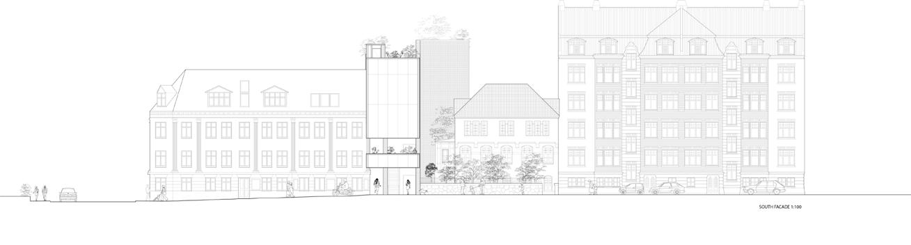 SYD FACADE VEST FACADE 37 04 / 07 SEMESTER / AARHUS / ØGADERNE / THUNØGADE / INFILL / KARAKTER / 30% PRIVAT - 70% PUBLIC / FORSKNINGS LAB - FÆLLESSKABSHAVER
