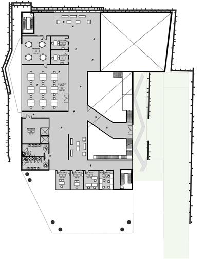 First Floor Plan Second Floor Plan Third Floor Plan 1. General Purpose Lab 5. Sanitation Station 9. Archive 2. Material Research Lab 6. Dishwashing Room 10. Archive Storage Room 3. Microscopy Lab 7. Conference Room 11. Mechanical 4. Material Storage 8. Office 12. Storage ACTIVE LAYER PERMAFROST Floor Elevated Archive is built into permafrost for safety and security