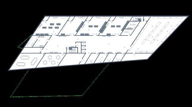 This building is a paleontology research lab and discovery center that focuses on analyzing fossils of current and extinct animals and materials found in regional permafrost. This building will focus on researching permafrost findings such as prehistoric fossils, viruses, and remains of previous ecosystems, while engaging public learning. The main public area is a discovery center, which displays the permafrost findings. Architecture acts and serves as a bridge between the building and environment. In doing so, we use structure and glass as a main component to obscure the lines and frame the nature outside of the building while also bringing it inside.The building has an angular form consisting of multiple extruded triangles to frame the surrounding nature.