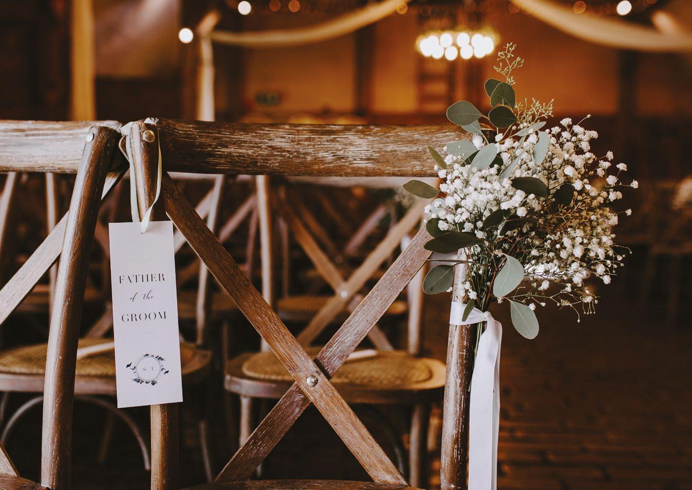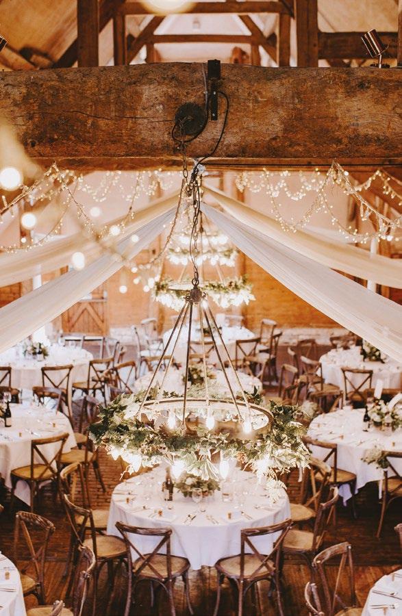 Lains is a versatile venue that can be decorated as you like, from posies at each row of chairs, to light-up letters, to garlands of greenery. Depending on your desired finish, the barn looks just as beautiful with the existing swag and fairy lights, as it does liberally adorned with flowers, bunting and lights.