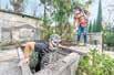 En un singular efecto visual, en una escalera lateral, mientras ascienden dos de los visitantes, sus sombras parecen un felino escalando. Desde la cima, Balanzario indica que se atisban, a una decena de kilómetros, los promontorios de la zona arqueológica de Dzibanché, con la que Ichkabal se hallaba conectada por medio de calzadas prehispánicas, ahora casi destruidas.