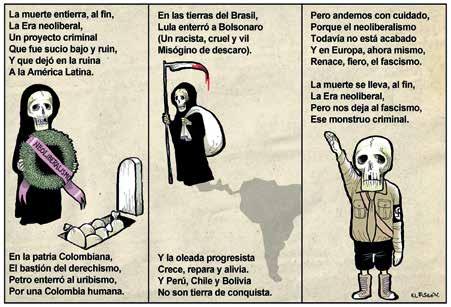 En el plano latinoamericano, distintos personajes de la vida política pertenecientes a la corriente progresista triunfaron en las elecciones en Colombia (Gustavo Petro), Chile (Gabriel Boric) y Brasil (Lula), con lo que en el mapa regional sólo tres países (Uruguay, Paraguay y Ecuador) se aferran al culto neoliberal -con la severas consecuencias sociales que ello implica-, mientras otros pocos se autodefinen de “centro”, pero siempre dependientes del imperio del norte.