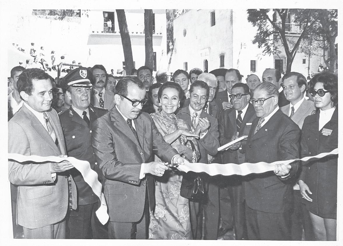 Inauguración del primer Festival Internacional Cervantino por el comité organizador con Dolores del Río en primer plano, 1972