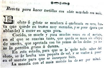 tantes enseñaban cómo preparar tamales “muy buenos” con la planta del maguey, tortillas de avena (un grano considerado alimento exclusivo para el ganado), tortillas “con solo la masa del olote bien molido” o bien con plátanos semi maduros. Para sus autores, estas recetas tenían la doble ventaja de combatir eficazmente la hambruna al mismo tiempo que garantizaban la aprobación de todos los sectores de la población por tratarse de recetas de cocina al “estilo del país”. La idea de un “estilo” culinario basado principalmente en el uso del maíz, aparece formulada por primera vez en la obra de José Antonio Alzate, los Consejos útiles para socorrer a la necesidad en tiempos que escasean los comestibles, publicados en 1785. Alzate fue un teólogo, periodista, filósofo y científico destacado