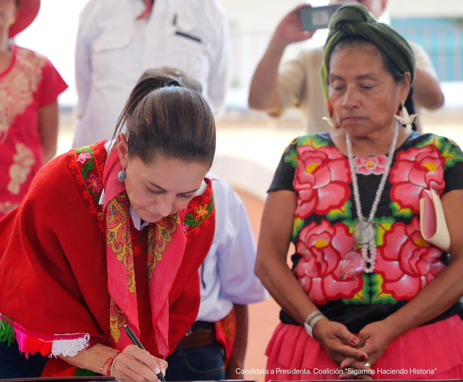 Ese va a ser el gobierno y la característica del gobierno que encabece a partir del 1o. de octubre de 2024. ¿Cuáles son las propuestas, que muchas ya firmamos y fueron elaboradas por un trabajo que desarrollamos con los diferentes equipos? El primero, que no sé si se mencionó, es la Reforma Constitucional para reconocer a los pueblos indígenas como sujetos de derecho, sus autonomías, el reconocimiento de la tierra, del agua, de la cultura.