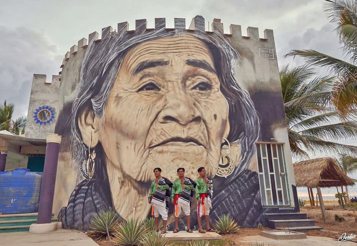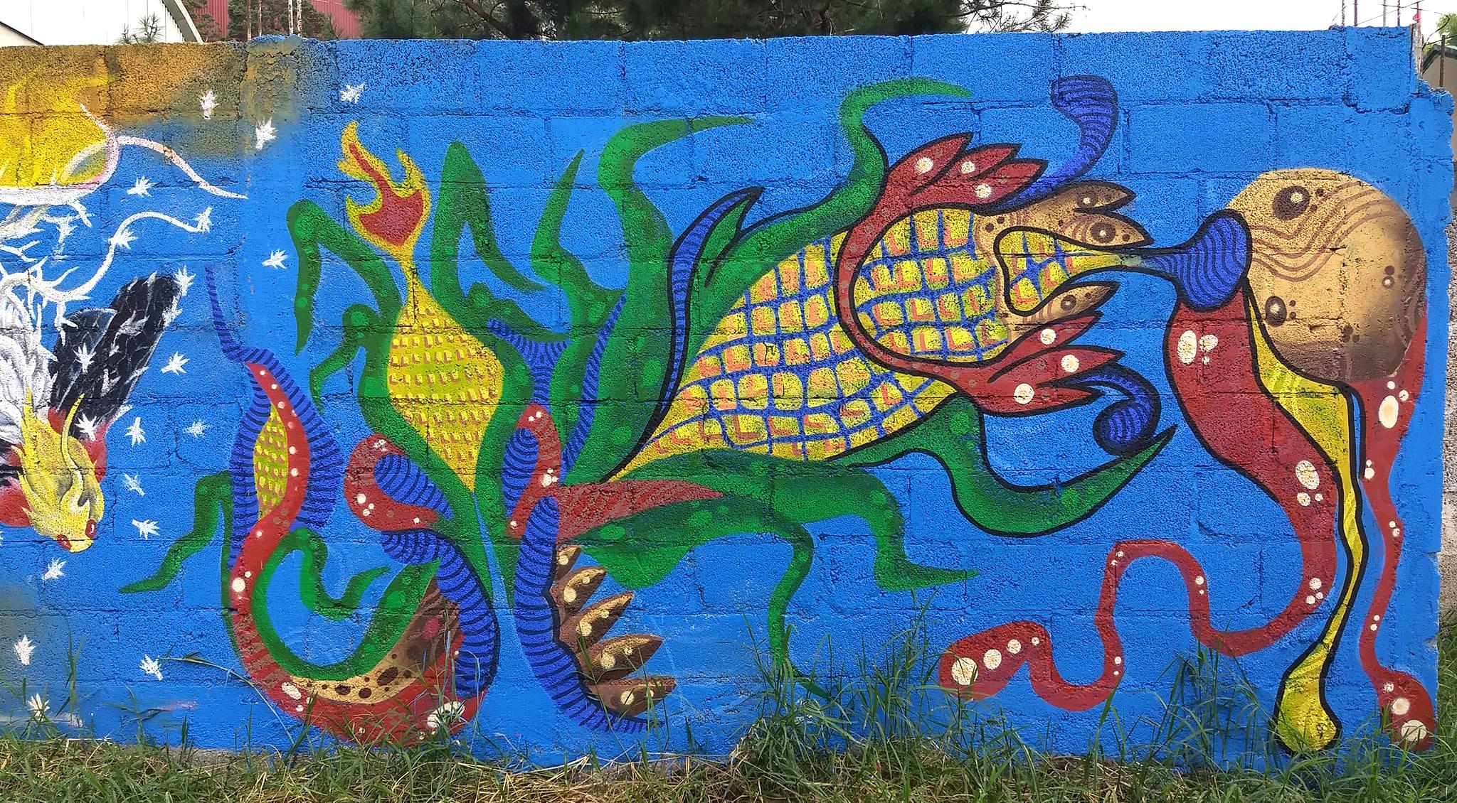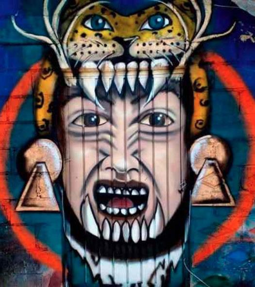Y el espacio de los sueños, es otro aspecto para el desarrollo de dichas expresiones, pues el lugar onírico sirve como fuente de inspiración por todos sus símbolos y elementos que lo conforman. Todas las imágenes creadas por el colectivo Jäit’sibi son representaciones de lo que ellos ven en su comunidad y en su vida; sin embargo, los habitantes de la Sierra viven inmersos en la dualidad; lo que se vive en la vida diurna es igual de importante que lo que se vive en la vida nocturna y onírica, siendo éstas dos visiones significativas para las interpretaciones gráficas. Por lo que, en un mundo cada vez más globalizado, las expresiones gráficas se han convertido en una forma universal, ayudándonos a comprender y apreciar las diferentes vivencias humanas. Tal es el caso del Colectivo Jäit’sibi en la Sierra Otomí Tepehua, Hidalgo; ya que, el florecimiento de las pintas, graffitis y murales fungen como testigos fidedignos de la historia, la memoria y la cultura otomí, además de ser imágenes que también funcionan como mecanismos para la reproducción cultural y como fuentes y documentos culturales e históricos contemporáneos. •
