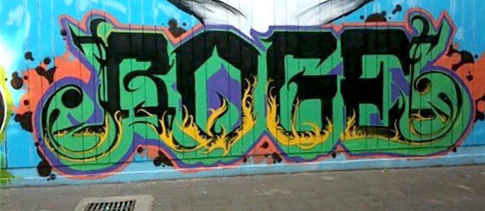 Esto atrapó mi atención y fue la pauta para empezar a crear un estilo más propio. En mi búsqueda estuve cambiando de tag (erg, frost, xpres, autor), hasta llegar al tag actual, Roge. El cual contiene las iniciales de mi nombre y conforme pasó el tiempo le di un significado (Resistiendo la Opresión Generada por una Expresión). En este tiempo de mis inicios, fui influenciado por mucha gente dentro del Graffiti como: Toker SF, Preso-Miser SF, RCK, Humo SF, Astro FK, Game LEP, Liser LEP, Koka LEP, Killer LEP, Bater CHK, Sean SF, Aser7, Joshua, Sper, Dret, Bone, Hueso, Mon y Crimen, por mencionar algunos. Grafiteros extranjeros: Twist, Chaz Bojórquez, Daim, Seak y BenFrank cuando realizó los primeros murales en México. Fuera del Graffiti, mura-