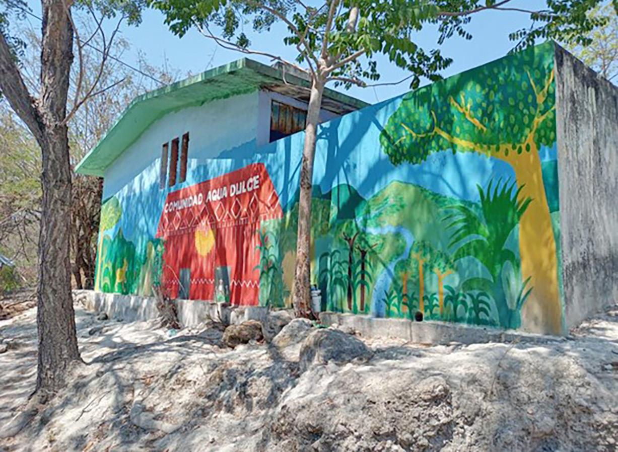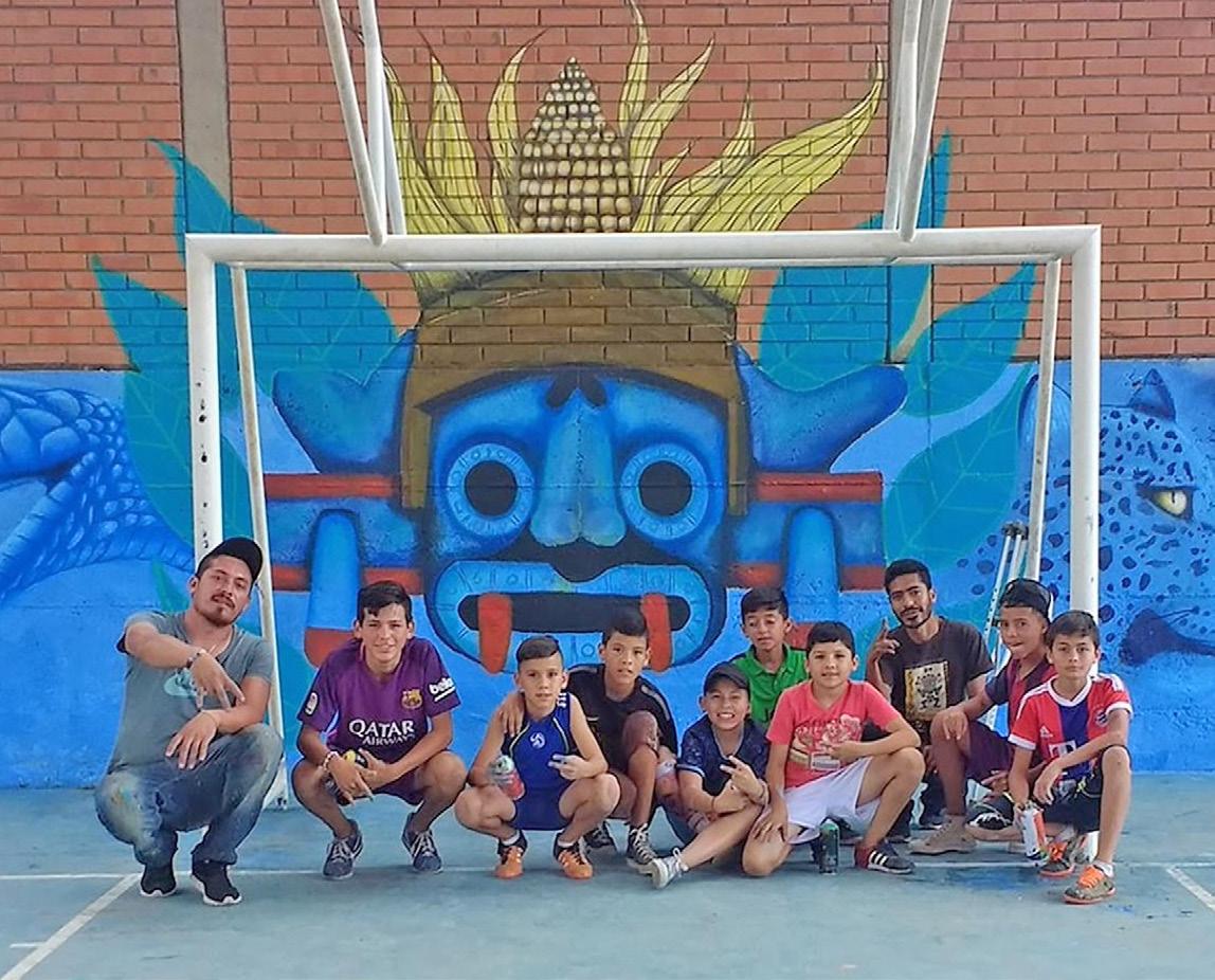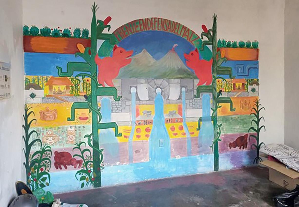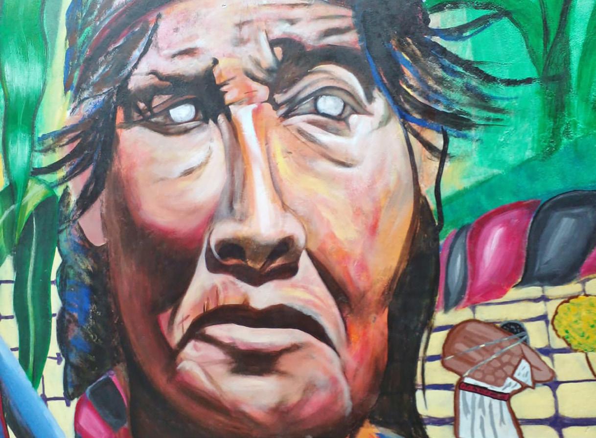 en una piedra que se encuentra dentro de la misma colonia. De esa manera, nuestro colectivo, el Frente en Defensa del Maíz, ha trabajado incansablemente en la construcción de un futuro más sostenible. Además de promover la producción de alimentos libres de plaguicidas y defender el espacio público, hemos fomentado la conciencia ambiental, el cuidado del agua y la importancia de construir comunidades fuertes. El arte, a través de los murales, se ha convertido en una herramienta poderosa para unirnos, reafirmar nuestra identidad y reivindicar nuestros espacios. •