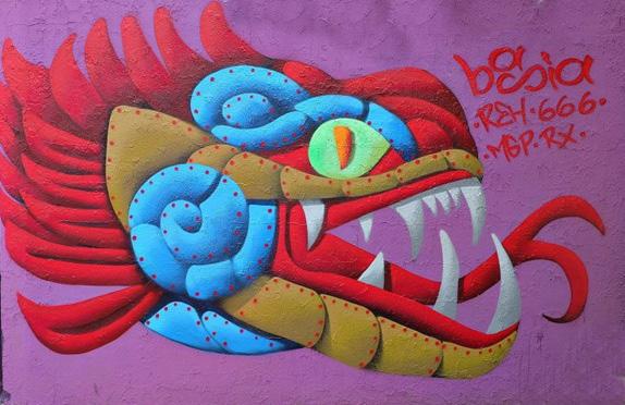 Mi Graffiti principalmente es sobre figuras prehispánicas. Enfatizo en resaltar la riqueza cultural que nuestro país tenía antes de la invasión española y que aún persiste en varias zonas del país. Procuro pintar en los lugares que visito, los asentamientos prehispánicos que resistieron al tiempo, como deidades, guerreros, arquitectura, etcétera.
