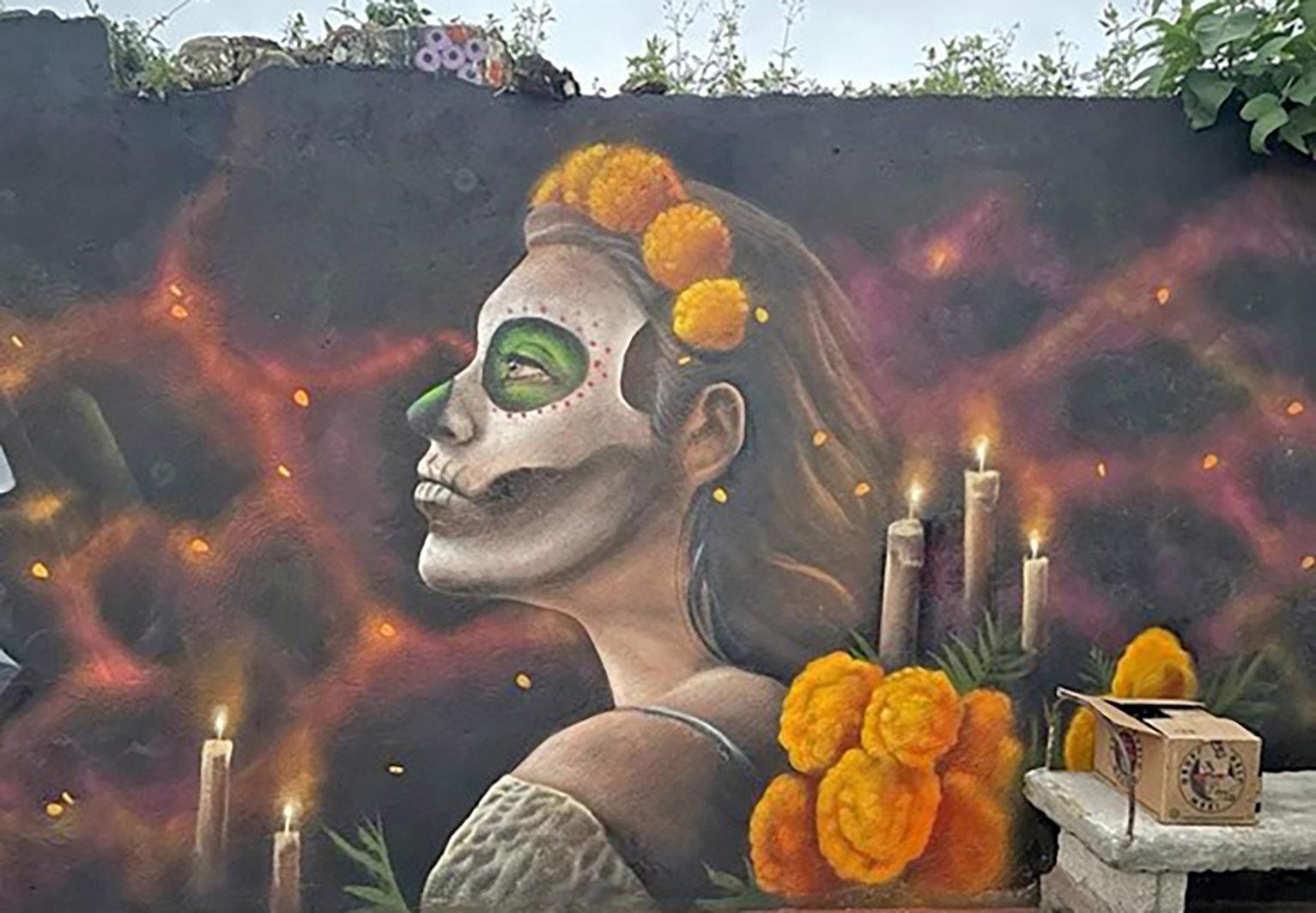 Virgen de Guadalupe, de poco más de tres metros por seis de ancho en la esquina donde se juntaba la banda, hasta hace unos años esa pinta sobrevivía en el callejón donde tomábamos las caguamas, pintábamos y fumábamos mota; cada año se le daba su retoque, pocos días antes del Día de la Virgen.